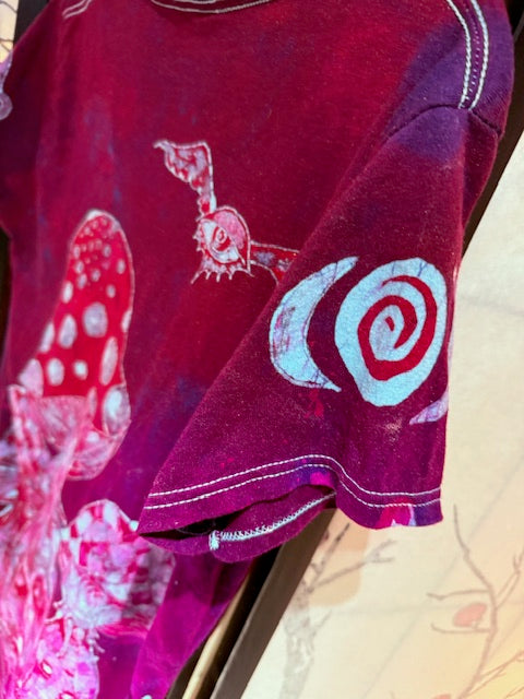Flying Eye Mushroom Moon on Front & Blinking Shrooms on back, V-neck t-shirt Size L