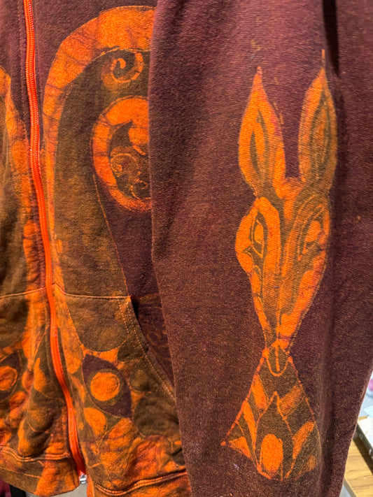 DRAGON Hoodie, Fleece, Pockets, Front Zipper, Size XL