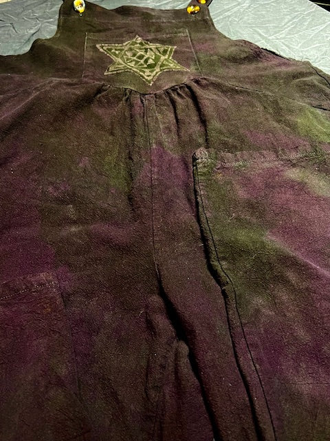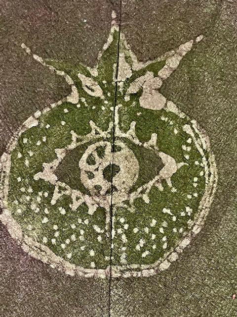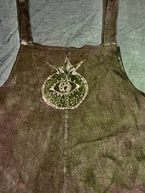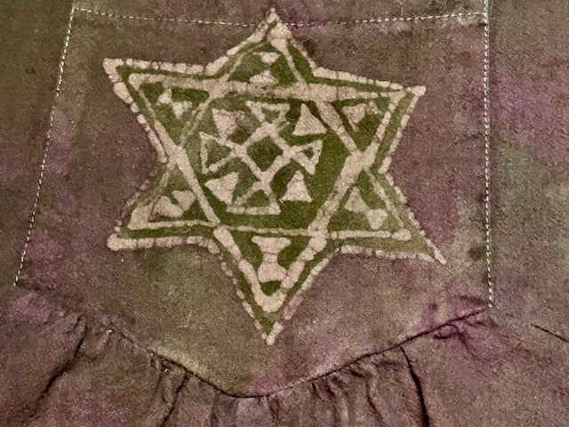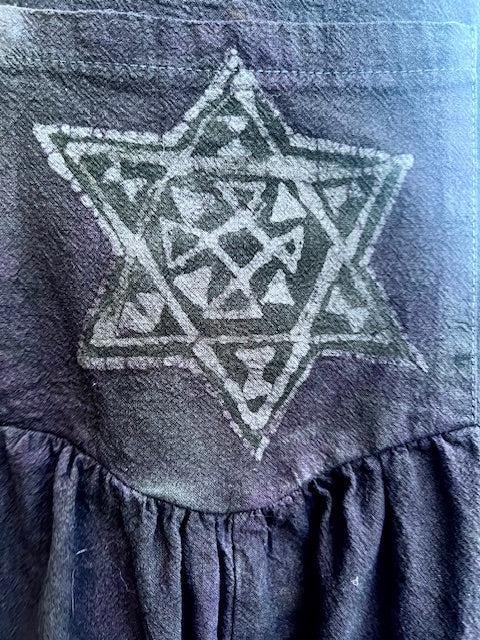 SIX POINTED STAR with PROTECTIVE SIGILS on front pocket, POMEGRANATE EYE on back. Front and side pockets, pleated front, adjustable button straps.