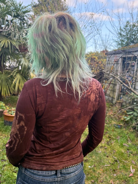This is a stretchy fitted long sleeved shirt based on the Y2K fashion.