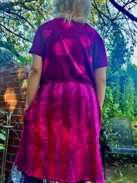 Bright and Happy Hearts and Stripes Dress in Glowing Fuchsias, Reds and Hot Pink.