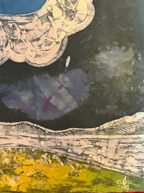 Hand Drawn, Painted, Dyed Original Design. Signed by the Artist. Collector's Item.