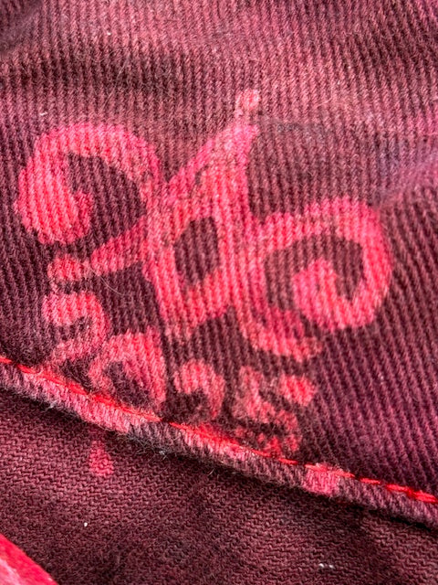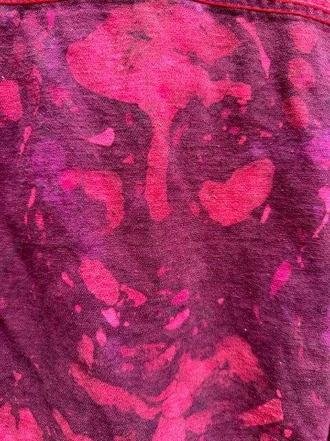 The colors are a purpley burgundy red and pink with a well worn grunge look showing the world it's your favorite and special jacket, unique to you!