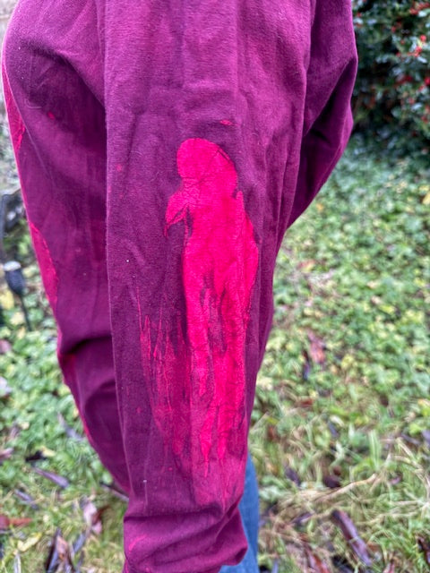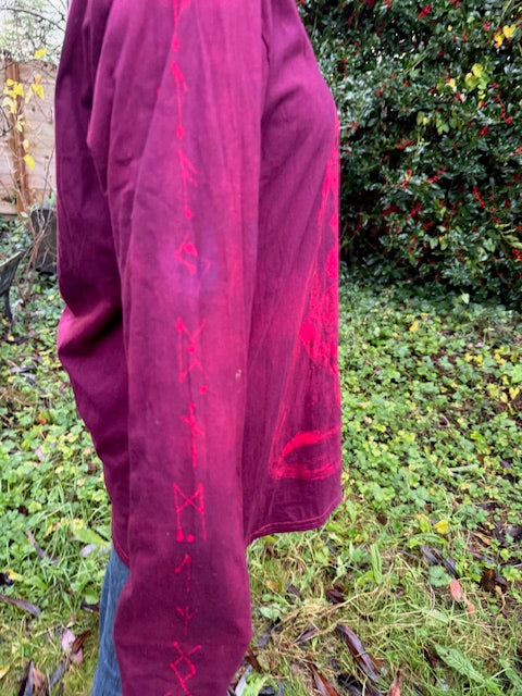 Details of Runes on sleeve, Crow figure from original painting on other sleeve!