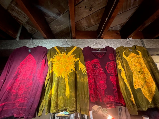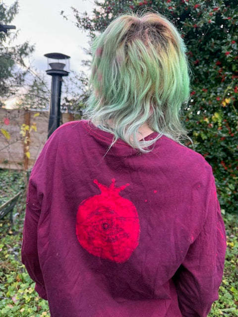 Long Sleeved Shirt – XL, "Queen of Disks" inspired by the Queen of Disks from Tarot of the Pomegranate.