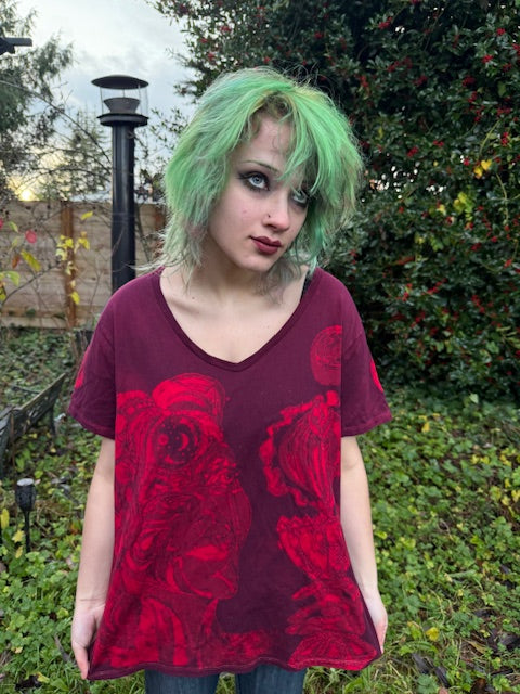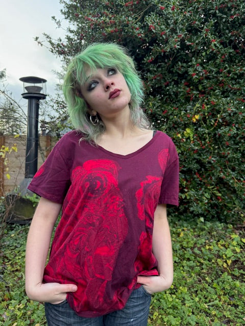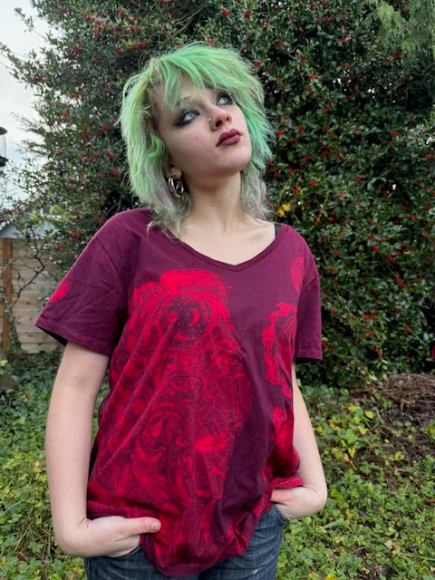 Short Sleeved V-Neck – 2X, Knight of Cups Tarot Black, Red, Burgundy.